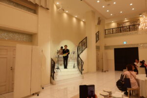 夜の懇親会では、オープニングセッションで原田実行委員長親子による演奏が披露されました。サックスとフルートの音色が奏でる「糸」が会場に響きました。「うどん県ご当地クイズ」で盛り上がり、勝ち残った3名が景品をゲットしていました。後半は県連ごとの紹介となりました。