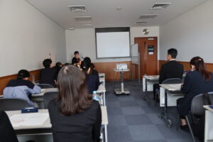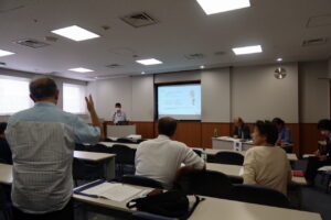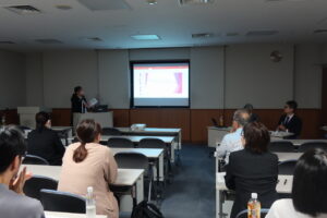 1日目は「南海トラフ巨大地震にどう備えるか?~能登半島地震から学ぶ~」と題して香川大学地域強靭化研究センターの特命教授の金田義行先生から、南海トラフ巨大地震の構造、能登半島地震での被害状況や、シミュレーション動画や実験動画から、どう巨大地震に備えるか、報告を受けました。病棟だったら、津波が起きたら、と想定しながら話を聞き、改めて備えることや見方を変えることの大事さを実感しました。